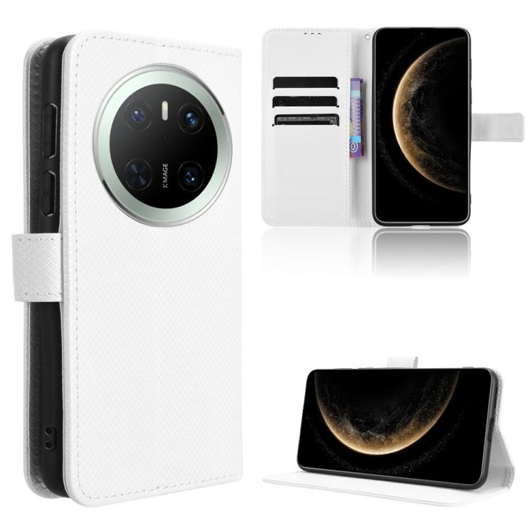 Funda de Cuero Huawei Mate 70 con Textura de Diamante (Blanca)
