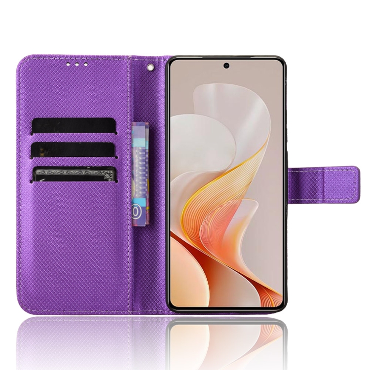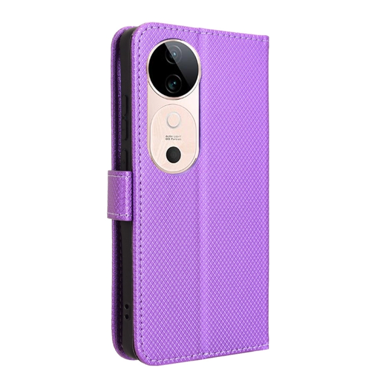 Funda de Cuero con Textura de Diamante para Vivo S19 5G (Morado)