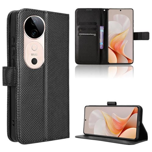 Funda de Cuero con Textura de Diamante para Vivo S19 5G (Negra)