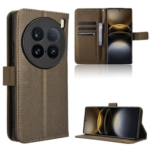 Funda de Cuero con Textura de Diamante para Vivo X100 Ultra 5G (Marrón)