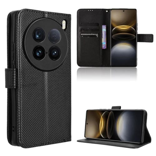 Funda de Cuero con Textura de Diamante para Vivo X100 Ultra 5G (Negra)