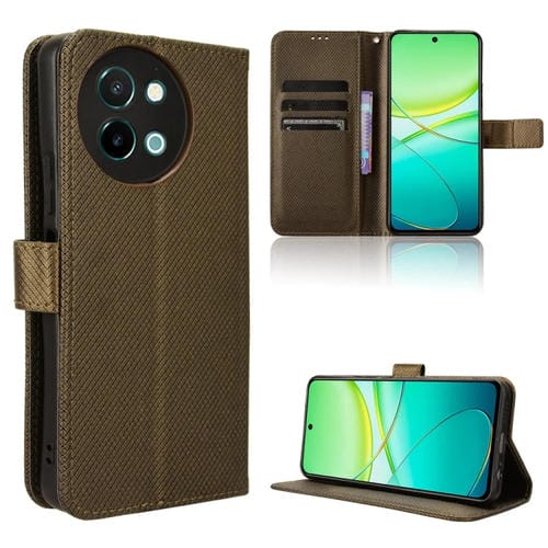 Funda de Cuero con Textura de Diamante para Vivo Y58 5G (Marrón)