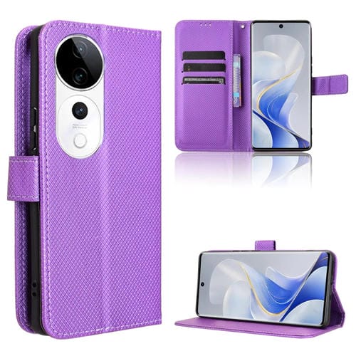 Funda de Cuero con Textura de Diamante para Vivo S19 Pro 5G / V40 5G (Morado)