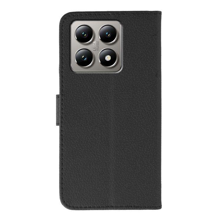 Funda de cuero con textura de lichi y estampado de plumas para Xiaomi 14T Pro (negra)
