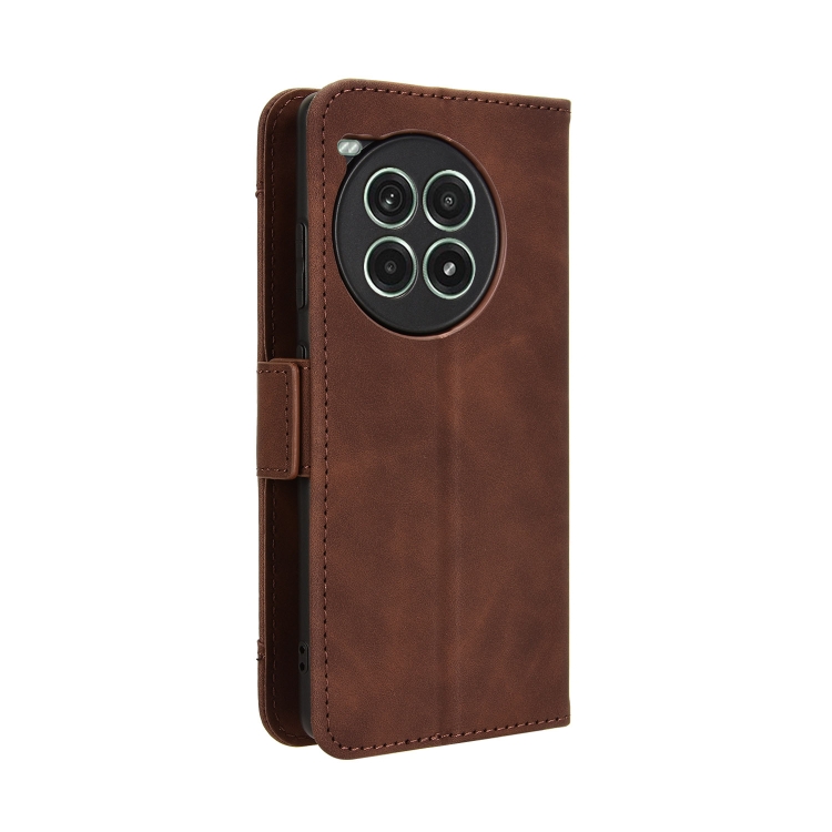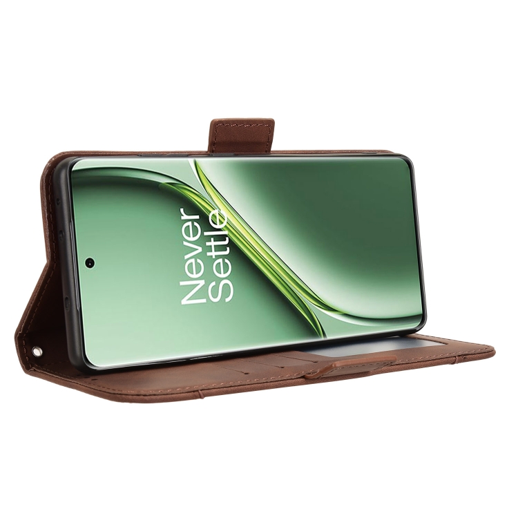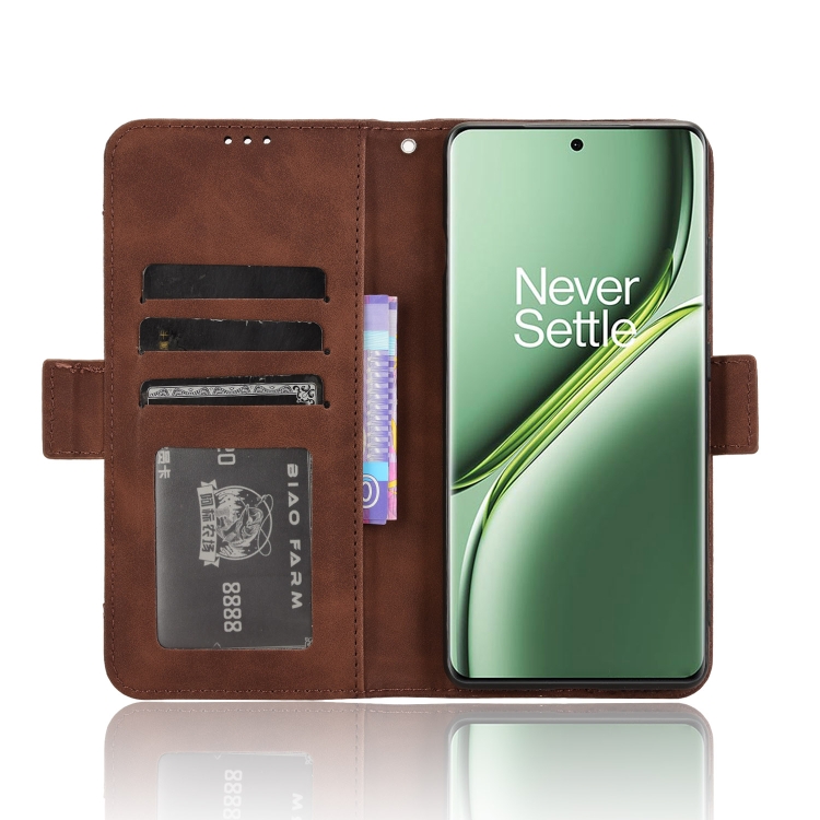 Funda de Cuero Textura Piel de Becerro para OnePlus Ace 3 Pro con Ranuras para Tarjetas (Marrón)