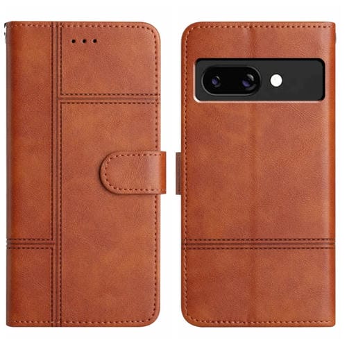 Funda de Cuero con Textura de Piel de Vaca y Costuras para Google Pixel 9A (Marrón)