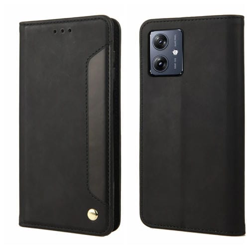 Funda de Cuero Textura Piel Sintética para Motorola Moto G55 (Negra)