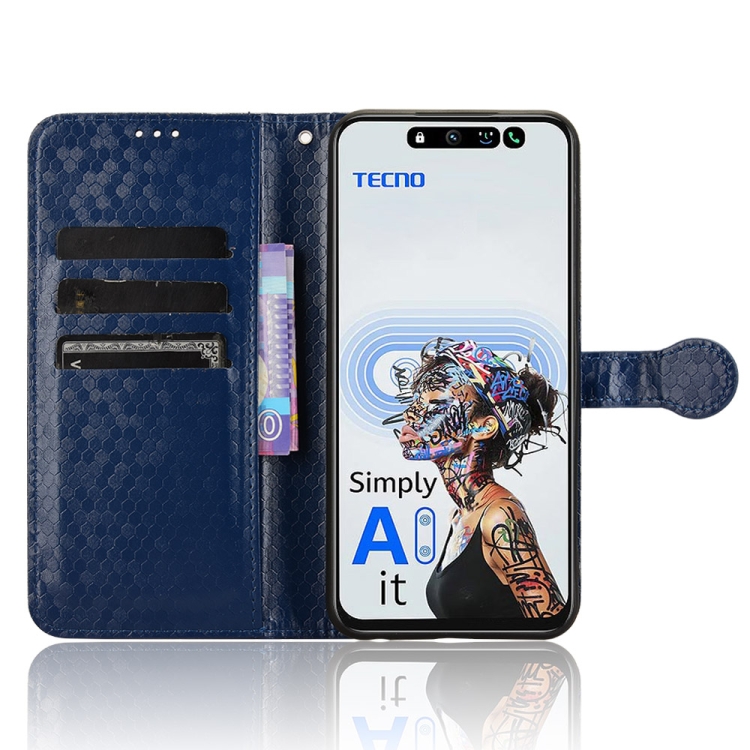 Funda de Cuero con Textura de Puntos de Panal para Tecno Pova 6 Neo 5G y Spark 30 5G (Azul)