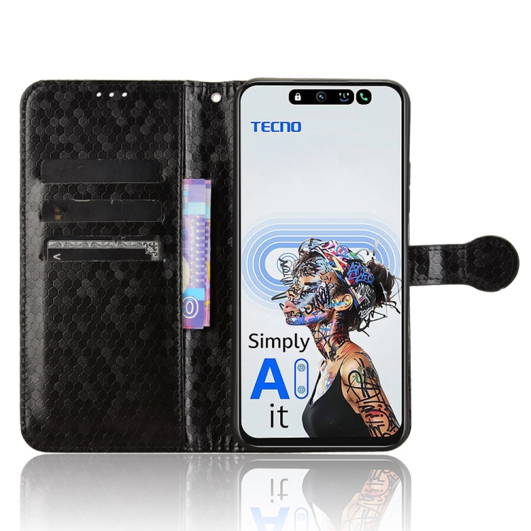 Funda de Cuero Textura Panal para Tecno Pova 6 Neo 5G y Spark 30 5G (Negro)