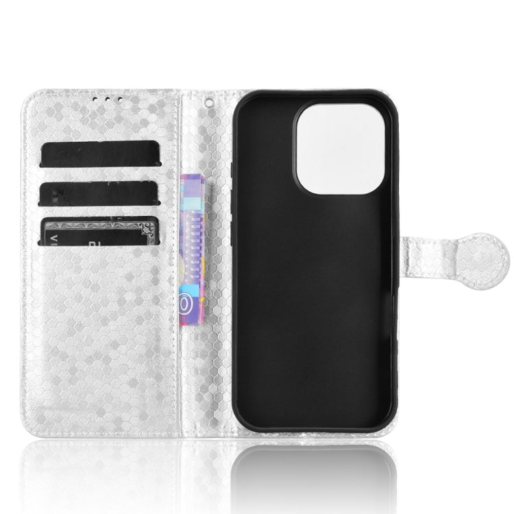 Funda de Cuero para iPhone 16 Pro Textura de Puntos en Forma de Panal (Plateada)