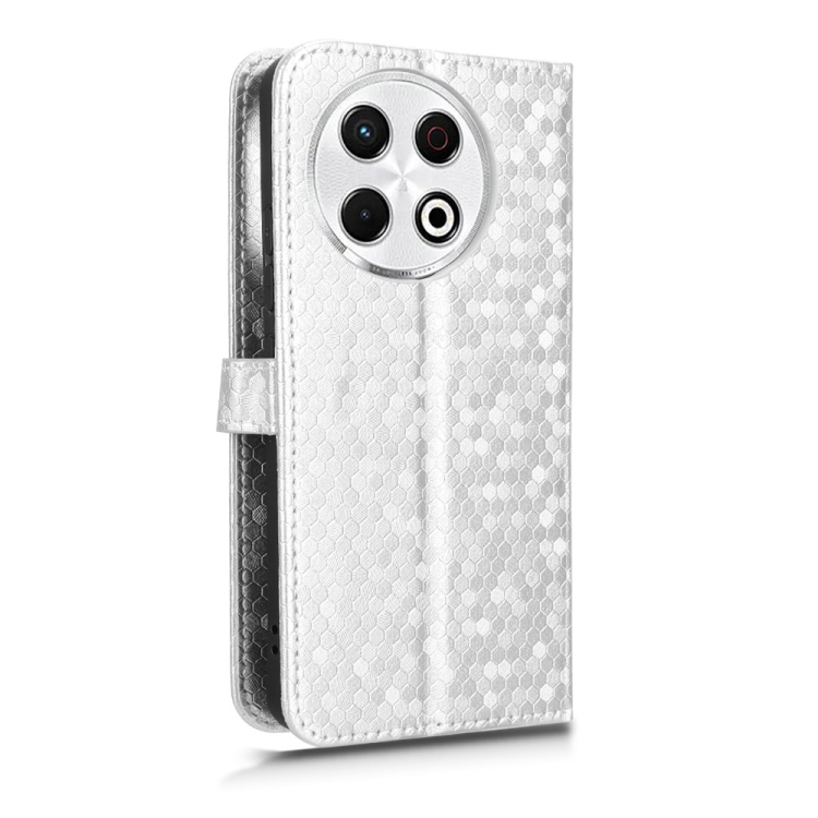 Funda de Cuero para Tecno Spark 30 Pro 4G con Textura de Puntos Panal (Plateada)