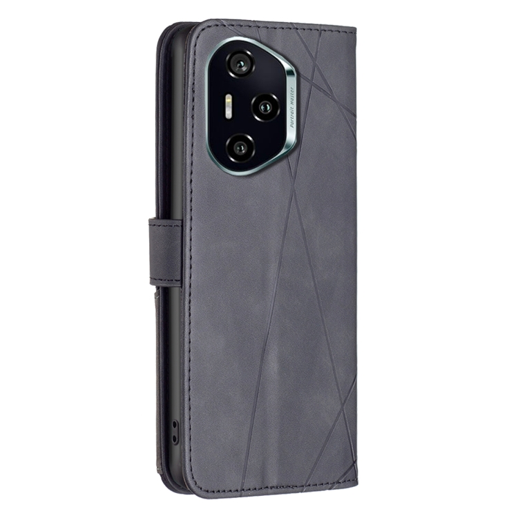 Funda de Cuero para Honor 300 Pro/300 Ultra con Textura de Rombos y Hebilla Magnética (Negro)
