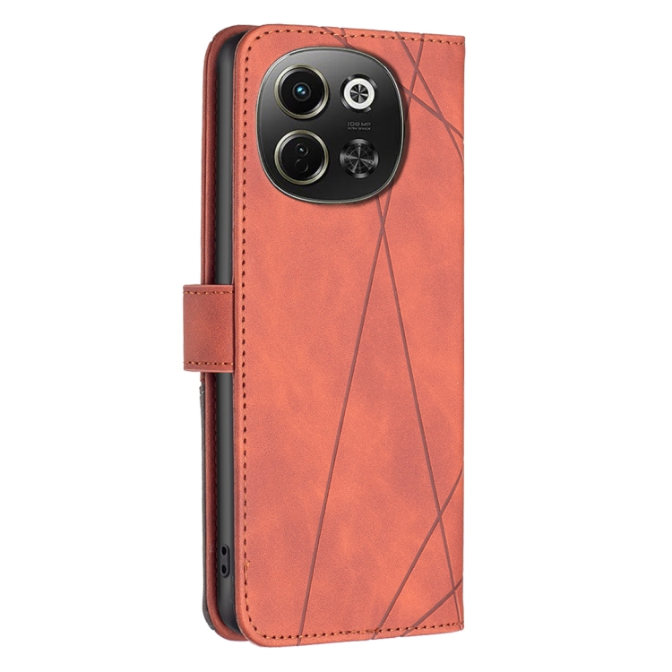 Funda de Cuero para Tecno Pova 6 Neo 5G y Spark 30 5G con Textura de Rombos y Hebilla Magnética (Marrón)