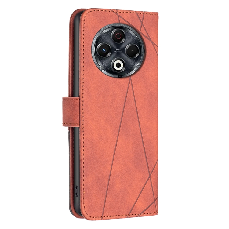 Funda de Cuero para Tecno Spark 30 4G con Textura de Rombos y Hebilla Magnética (Marrón)