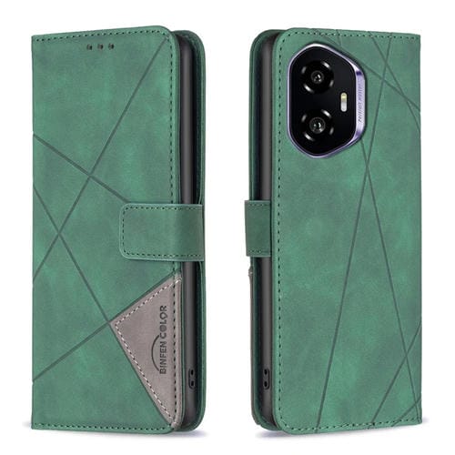 Funda de Cuero con Textura de Rombos y Hebilla Magnética para Honor 300 (Verde)