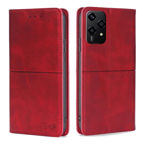 Funda de Cuero Textura de Vaca con Cierre Magnético para Honor 200 Lite 5G (Rojo)