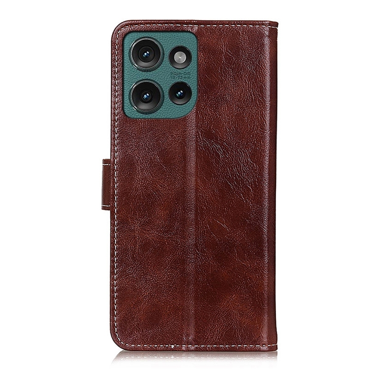 Funda de Cuero Crazy Horse para Motorola Edge 50 (Marrón) con Textura Retro