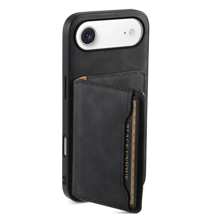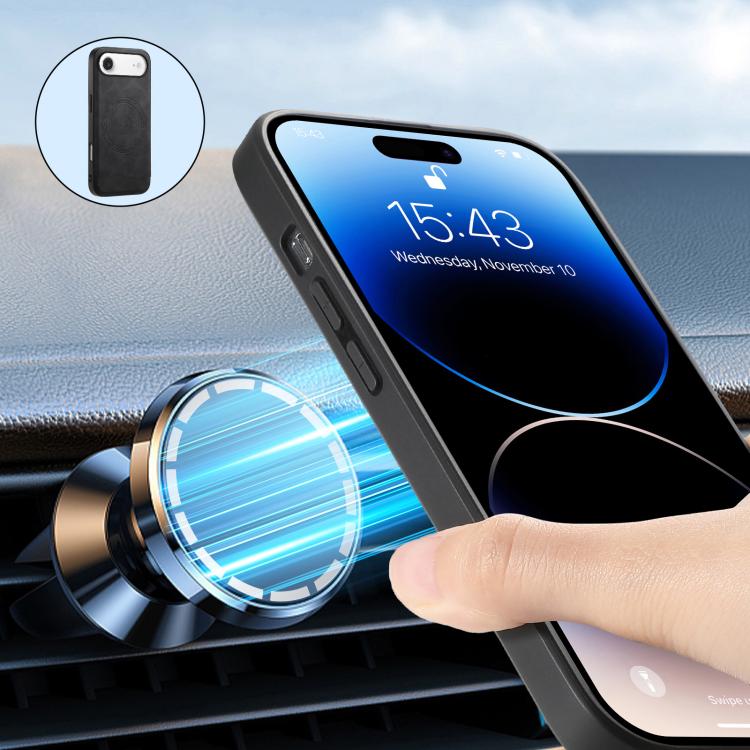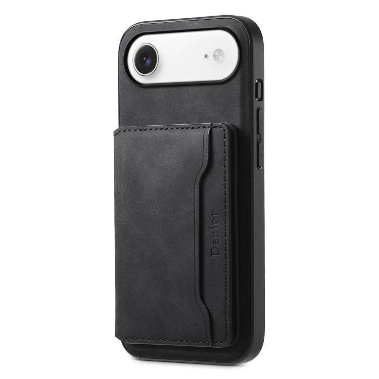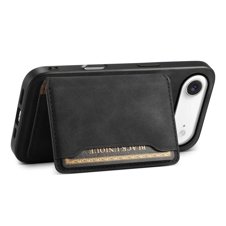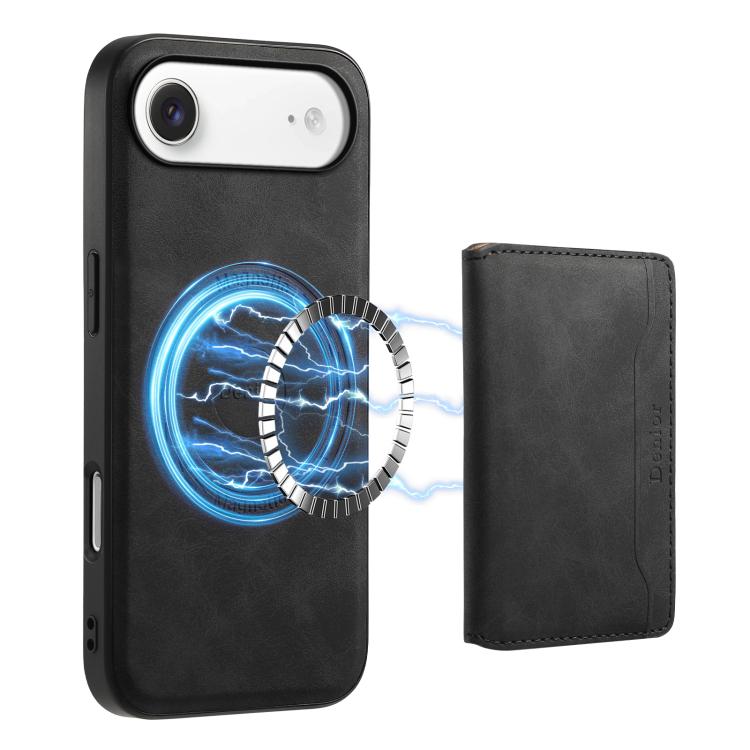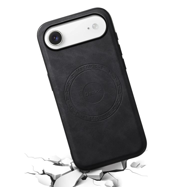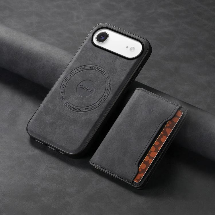 Funda de cuero con textura retro para iPhone Air Denior D13, con ranuras para tarjetas MagSafe (negro)
