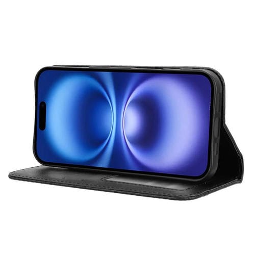 Funda de cuero con textura retro y hebilla magnética para iPhone 17 (negra)
