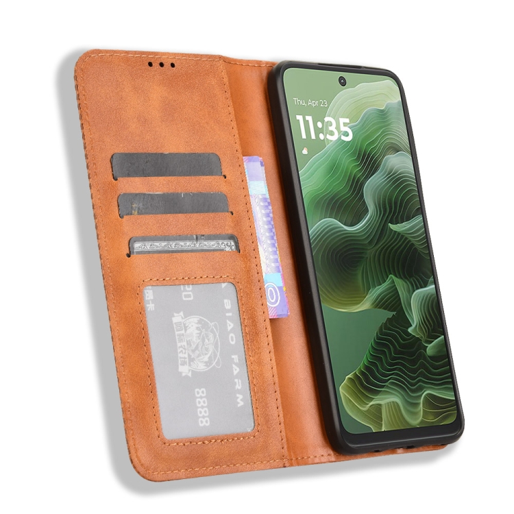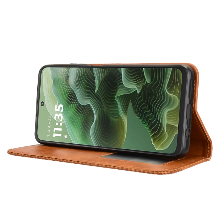 Funda de Cuero Motorola Moto G35 5G con Textura Retro y Hebilla Magnética (Marrón)