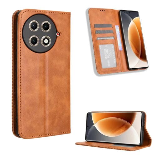 Funda de Cuero Tecno Camon 30S 4G y 30S Pro 4G con Textura Retro y Hebilla Magnética (Marrón)