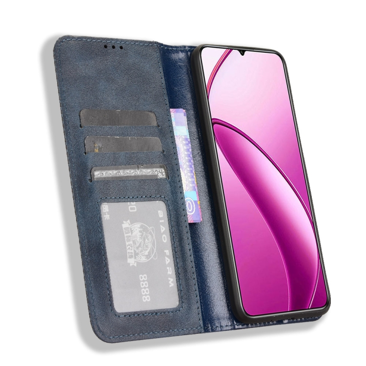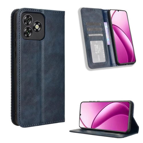 Funda Cuero Textura Retro con Hebilla Magnética para Teléfono Oukitel C53 (Azul)