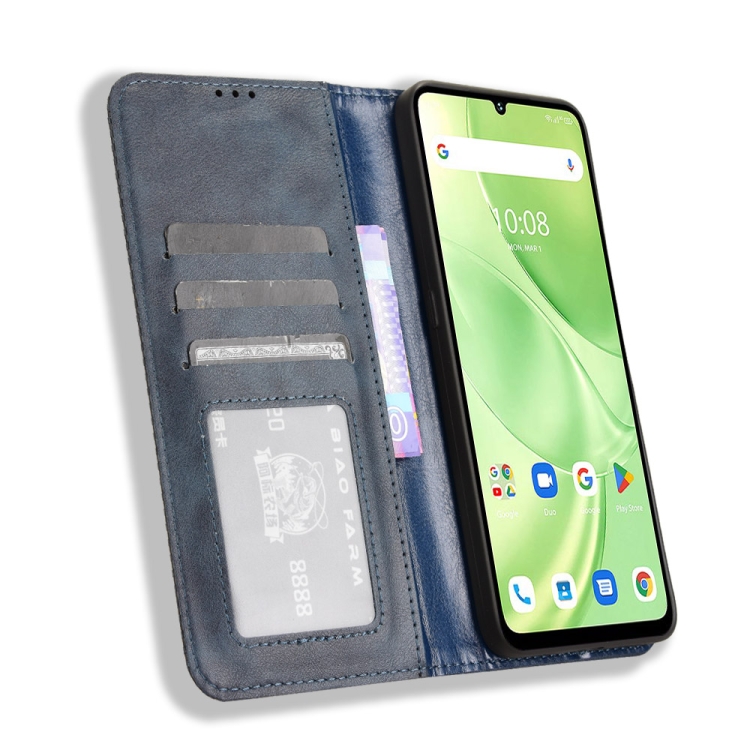 Funda de Cuero Umidigi G9 5G con Textura Retro y Hebilla Magnética (Azul)