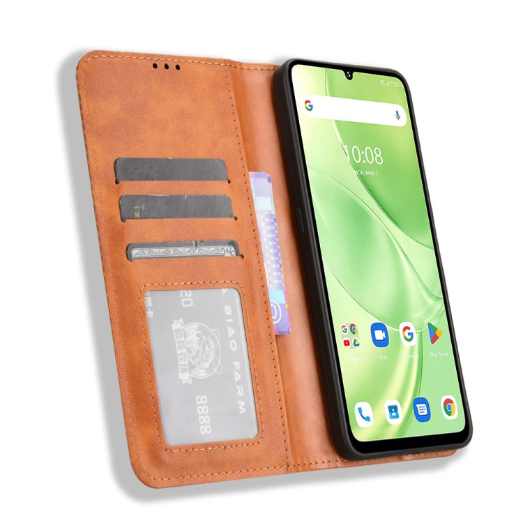 Funda de Cuero Umidigi G9 5G con Textura Retro y Hebilla Magnética (Marrón)