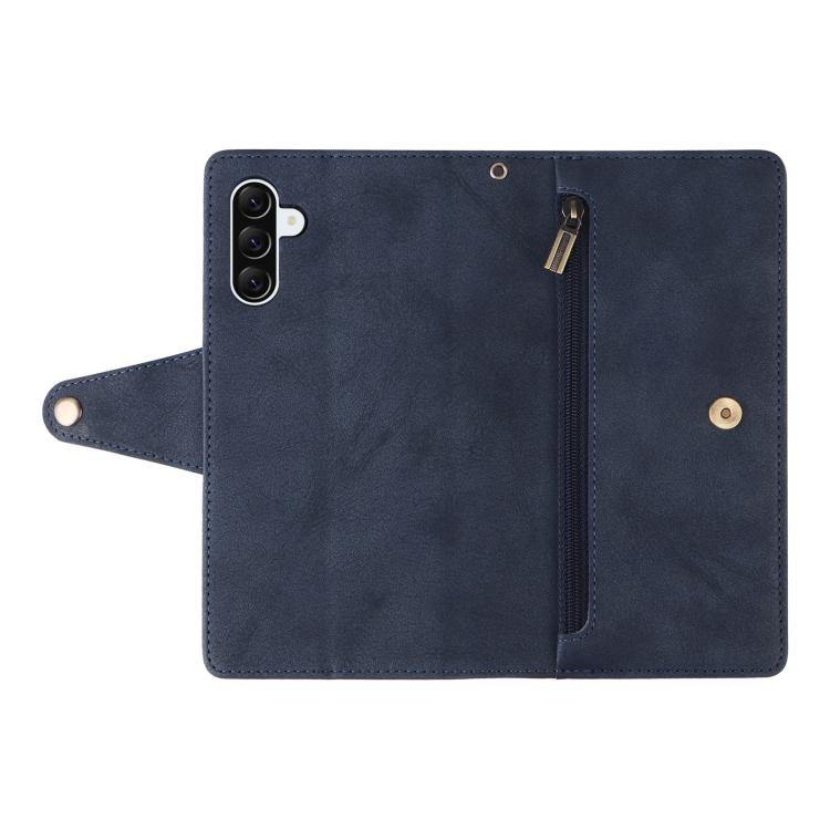 Funda de Cuero Samsung Galaxy A36 5G Tres Pliegues Hebilla Remache (Azul)