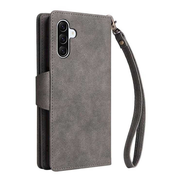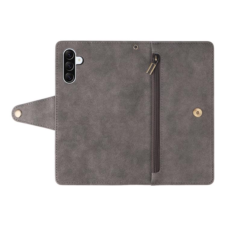 Funda para Samsung Galaxy A36 5G Cuero Tres Pliegues Hebilla Remache (Gris)