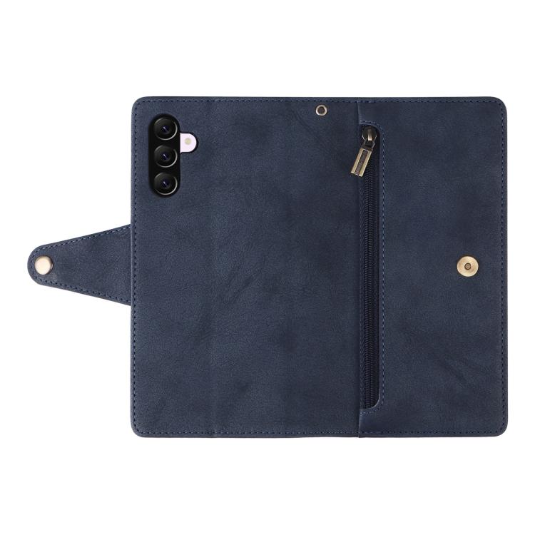 Funda de Cuero Samsung Galaxy A56 5G con Tres Pliegues y Hebilla de Remache (Azul)