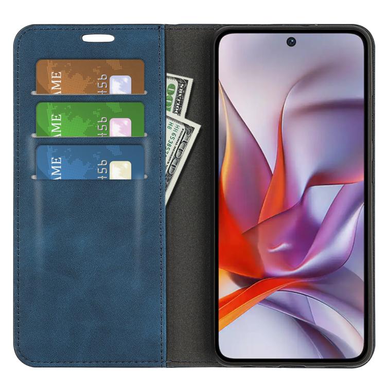 Funda de Cuero con Ventosa Magnética para Motorola Moto G 5G 2025 Retro-Skin (Azul Oscuro)