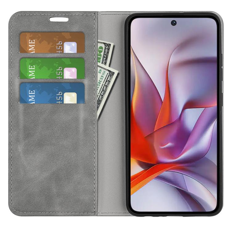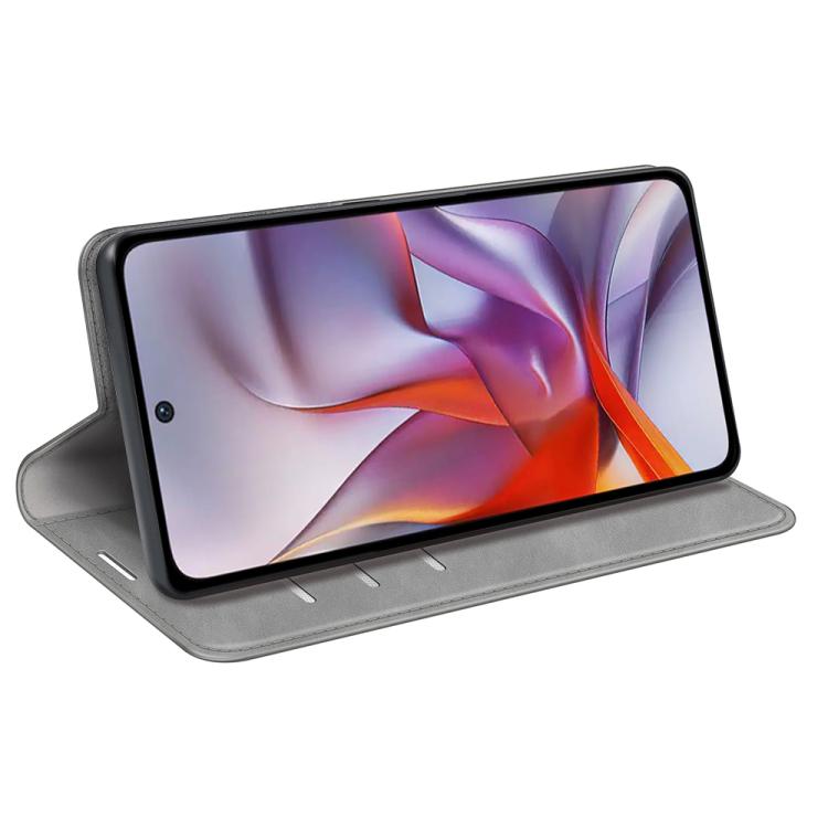 Funda de Cuero con Ventosa Magnética para Motorola Moto G 5G 2025 Retro-Skin (Gris)