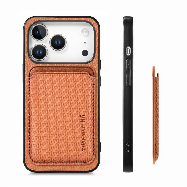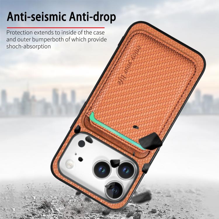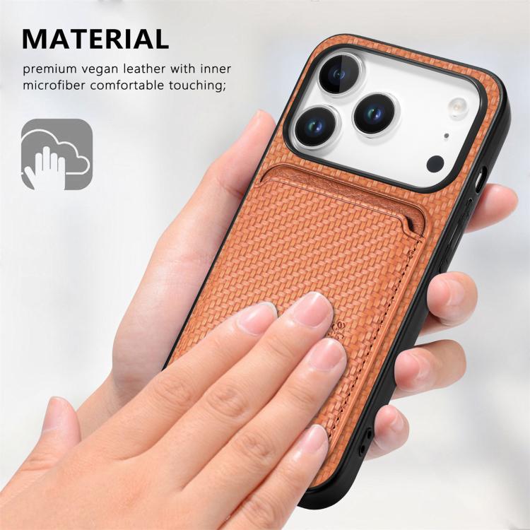 Funda de cuero de fibra de carbono con tarjetero Magsafe para iPhone 17 Pro (marrón)