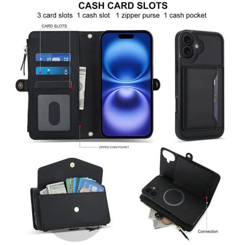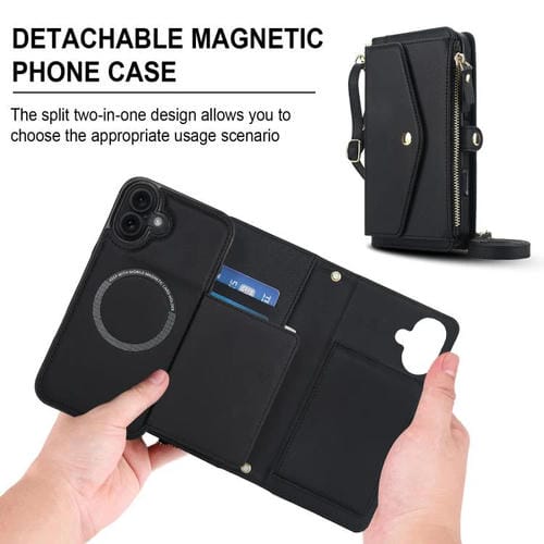 Funda de cuero desmontable con cordón para iPhone 17 (negro)