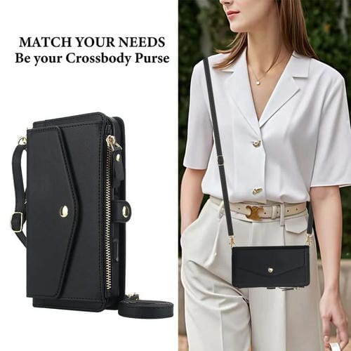 3. Práctica función de cartera: Las ranuras para tarjetas y los compartimentos para efectivo permiten guardar tarjetas de crédito, efectivo o billetes pequeños necesarios para el uso diario.