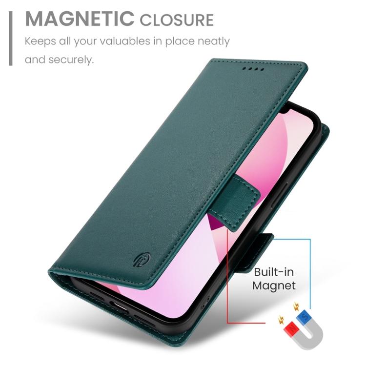 Funda de Cuero Esmerilado con Hebilla Lateral Magnética para iPhone 13 (Verde Oscuro)