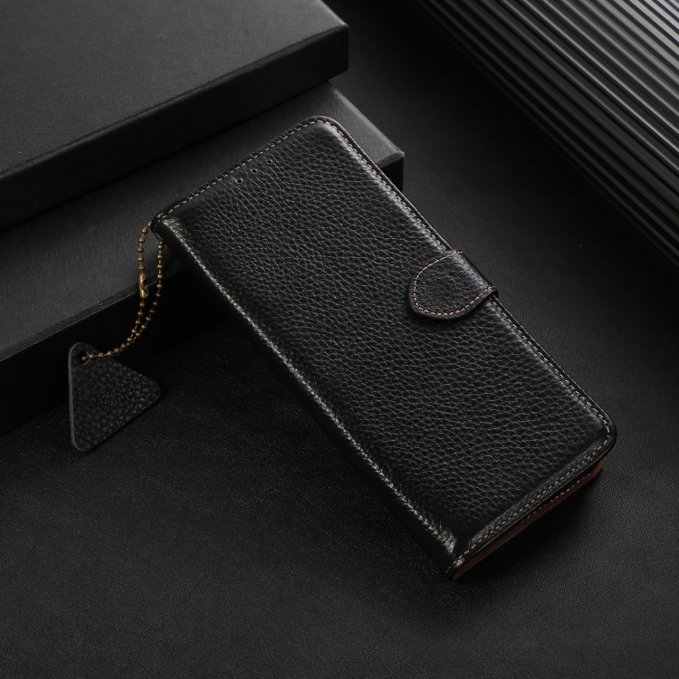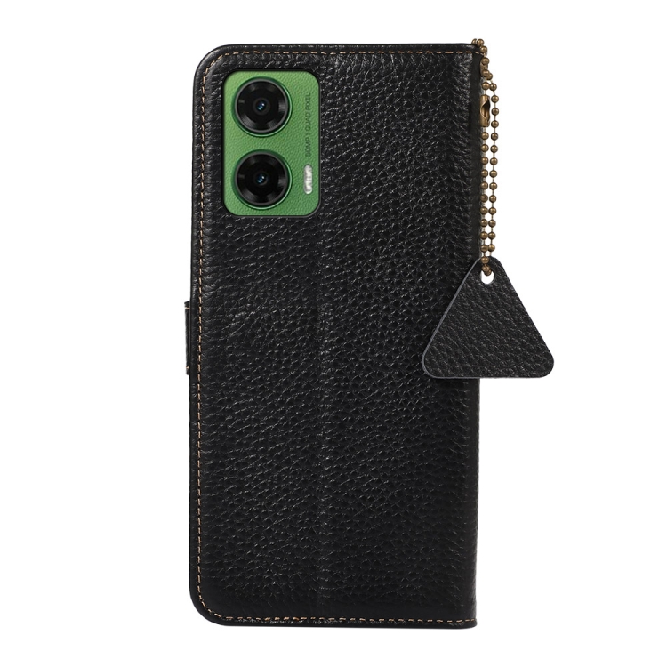 Funda de Cuero Genuino con Textura de Lichi Rfid para Motorola Moto G35 (Negro)