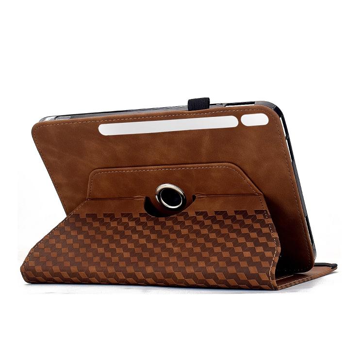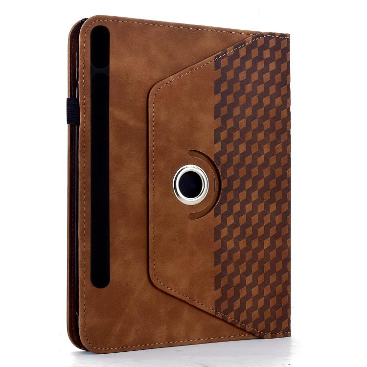 Funda de cuero inteligente con relieve romboidal giratorio para Samsung Galaxy Tab S9 FE+ / S9+ (marrón)