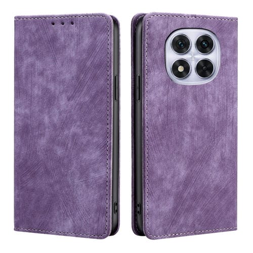 Funda de Cuero Magnética con Cepillo Antirrobo Rfid para Redmi Note 14 Pro 5G (Morado)