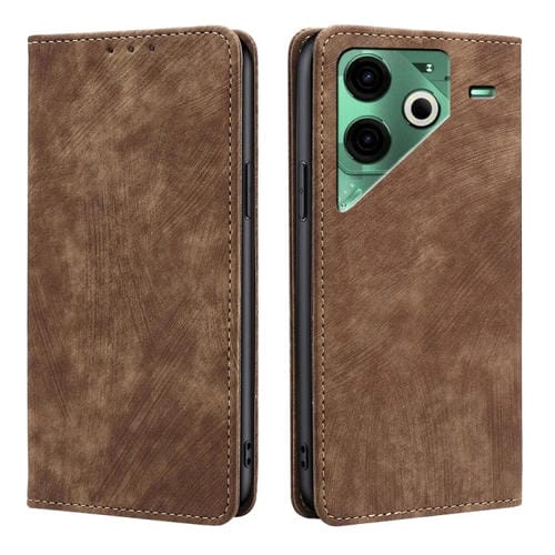 Funda de Cuero Magnética para Tecno Pova 6 Neo 4G con Cepillo Antirrobo Rfid (Marrón)