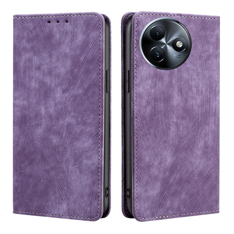 Funda de Cuero Magnética con Cepillo Antirrobo Rfid para Teléfono Itel S24 4G (Morado)