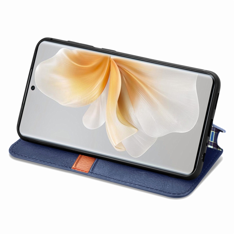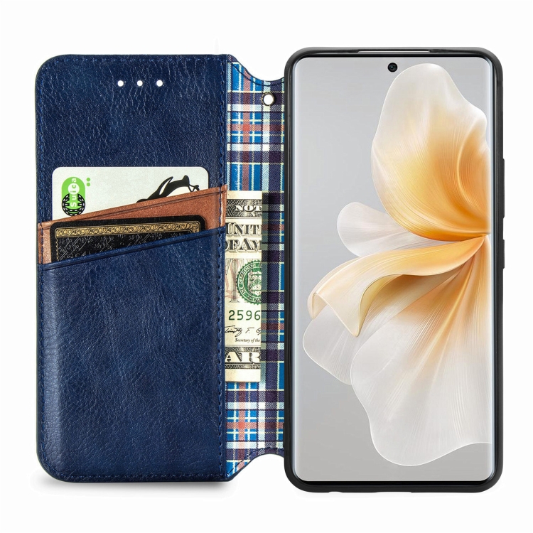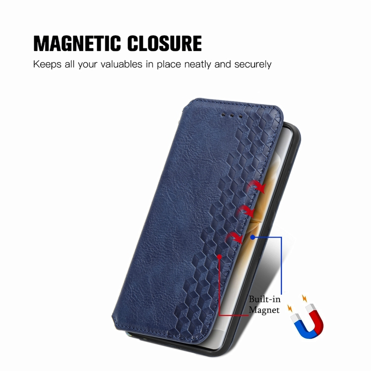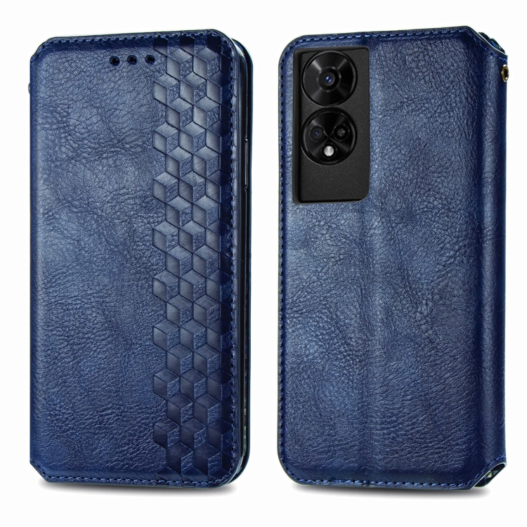 Funda de Cuero Magnética con Rejilla Cúbica para TCL 50 5G (Azul)