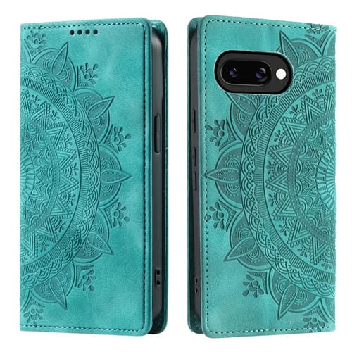 Funda de Cuero Magnética con Relieve Totem para Google Pixel 9A (Verde)