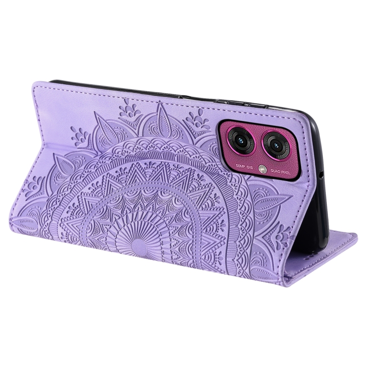 Funda de Cuero Magnética con Relieve Totem para Motorola Moto G55 (Morado)