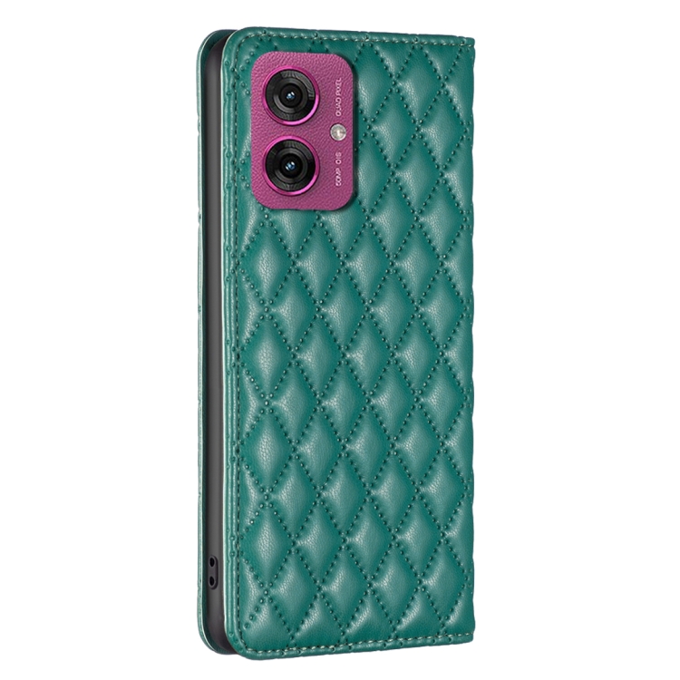 Funda de Cuero Magnética con Tapa Tipo Diamante para Motorola Moto G55 (Verde)
