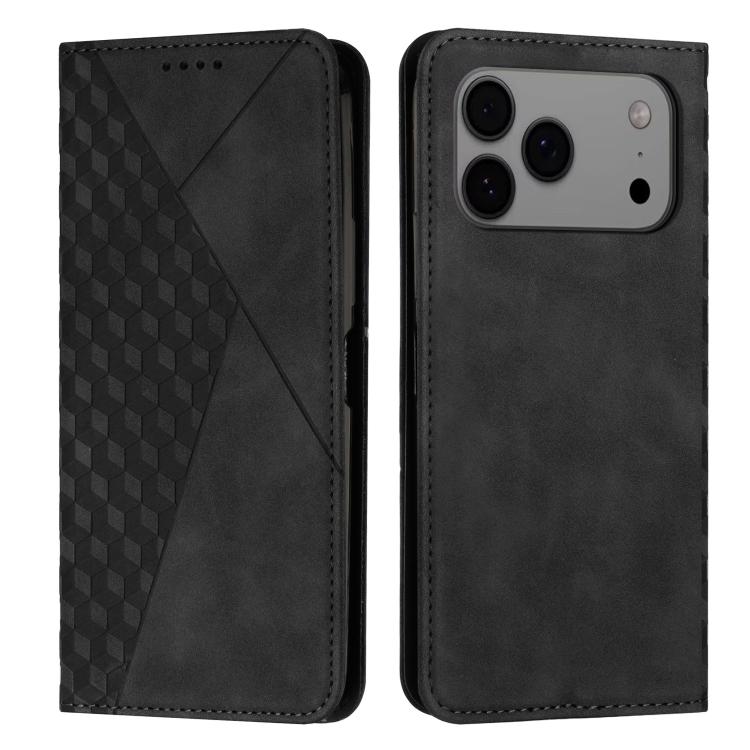 Funda de cuero magnética con textura de diamante para iPhone 17 Pro Max (negro)