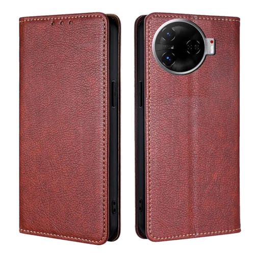 Funda de Cuero Magnética para Tecno Camon 30 Pro 5G con Acabado Brillante (Marrón)