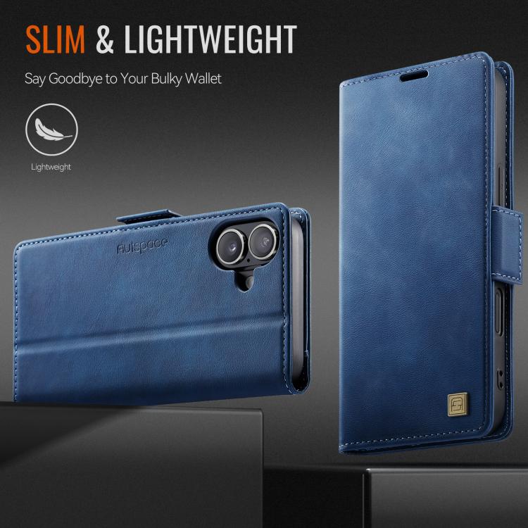 Funda de cuero magnética RFID MagSafe con hebilla lateral para iPhone 17 AutSpace A11 (azul)