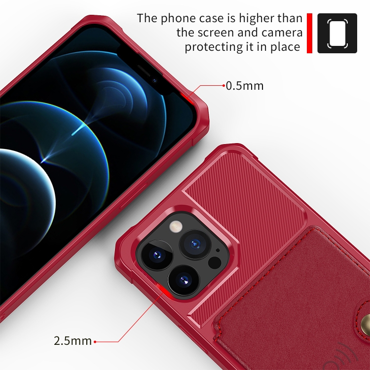 Funda de Cuero para iPhone 13 Pro con Monedero Magnético (Rojo)